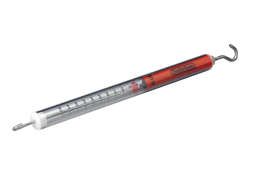 Dynamometer / krachtmeter van 50 Newton, ideaal geschikt voor mechanica of kracht proeven. Gedeeltelijk transparante behuizing waar de maatverdeling op staat voor makkelijke aflezing. Maatverdeling 1 N